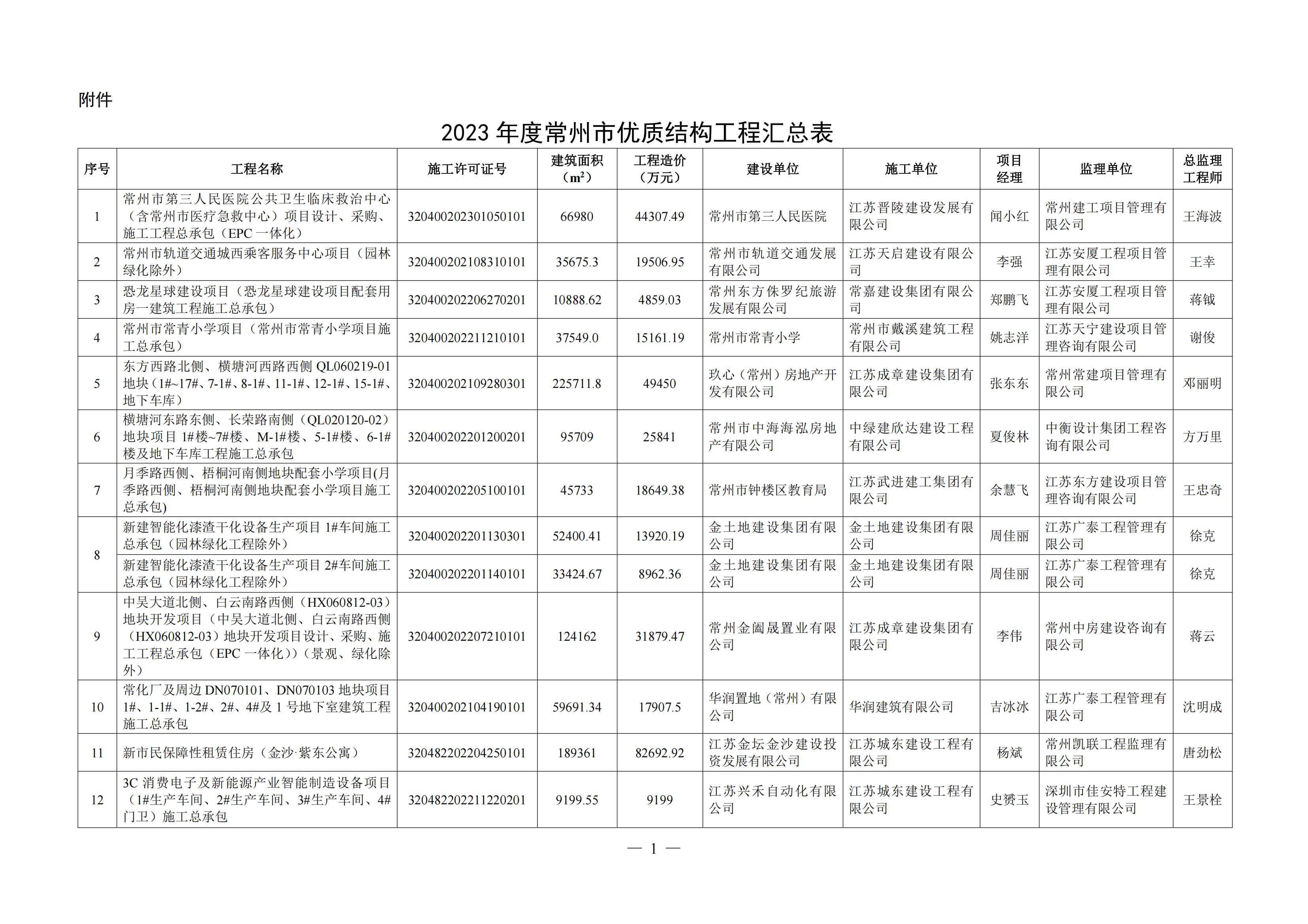 喜报┃公司多个项目获评2023年度常州市优质结构工程