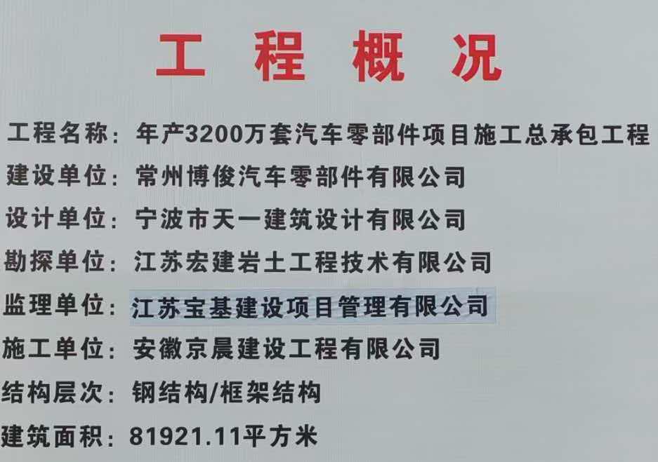 · 监理单位: 江苏宝基建设项目管理有限公司