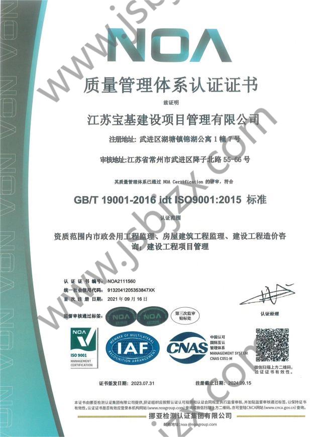 质量管理体系认证证书